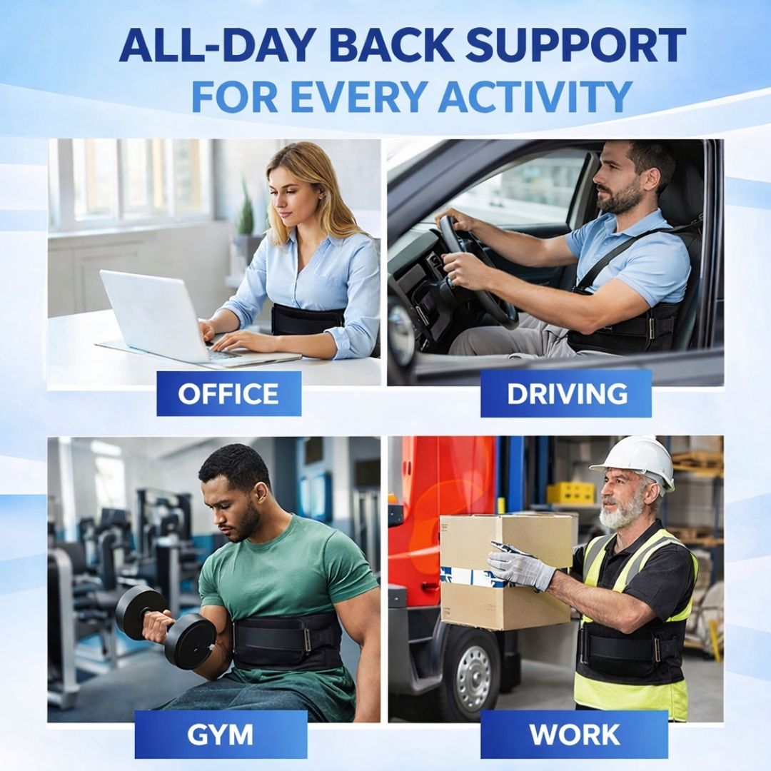 Yes, it reduces pressure on the lower back, supports muscles, and limits unwanted movements. It’s especially useful during long sitting hours, lifting, or even when pain flares up unexpectedly.